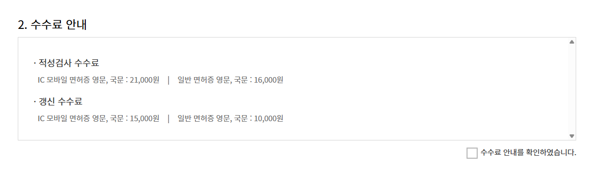 4. 2종 면허 비용은 일반 10000원 / IC 15000원