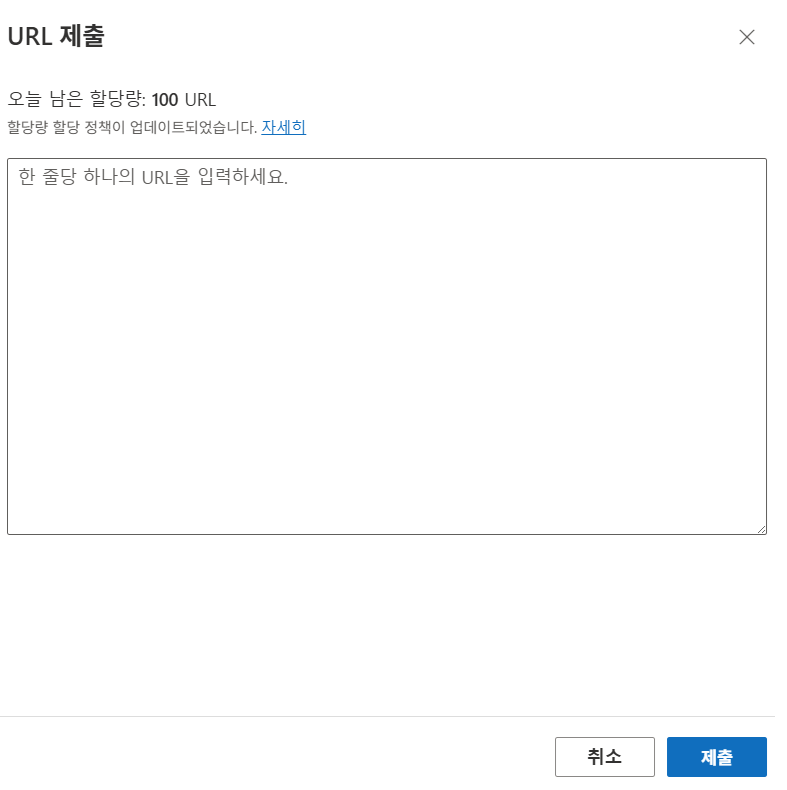3. URL 제출 한번에 최대 100개 제출 가능